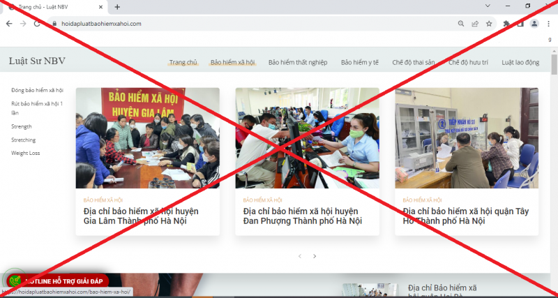 Bảo hiểm xã hội TP. Hà Nội cho biết, trang web http://www.hoidapluatbaohiemxahoi.com có tên “Luật Sư NBV” đã tạo các chuyên mục bảo hiểm xã hội, bảo hiểm y tế, bảo hiểm thất nghiệp... nhưng hoàn toàn không có nội dung và hình ảnh liên quan đến các chế độ, chính sách, pháp luật về bảo hiểm xã hội, bảo hiểm y tế.