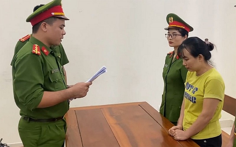 | Cơ quan công an Hà Tĩnh tống đạt quyết định khởi tố bị can Hoàng Thị Thảo. |