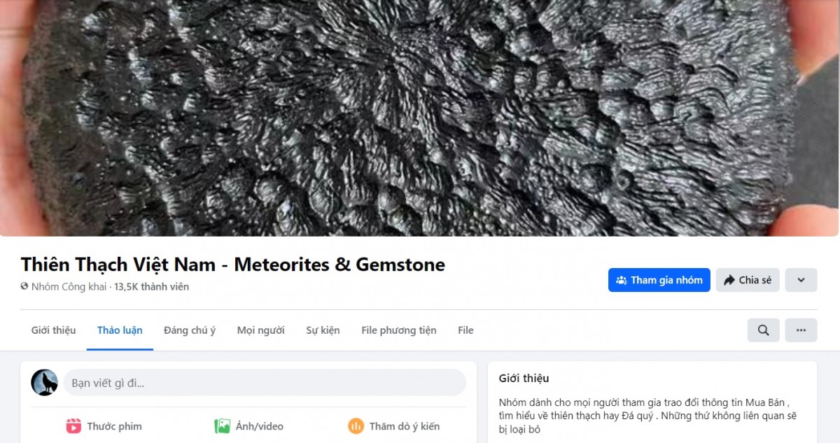 | Một nhóm mua bán đá thiên thạch có 13.500 thành viên tham gia. Ảnh chụp màn hình |