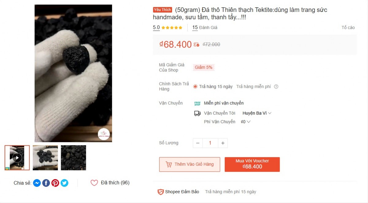 | Trên Shopee, đá thiên thạch cũng được bán với giá rất rẻ. Ảnh chụp màn hình |