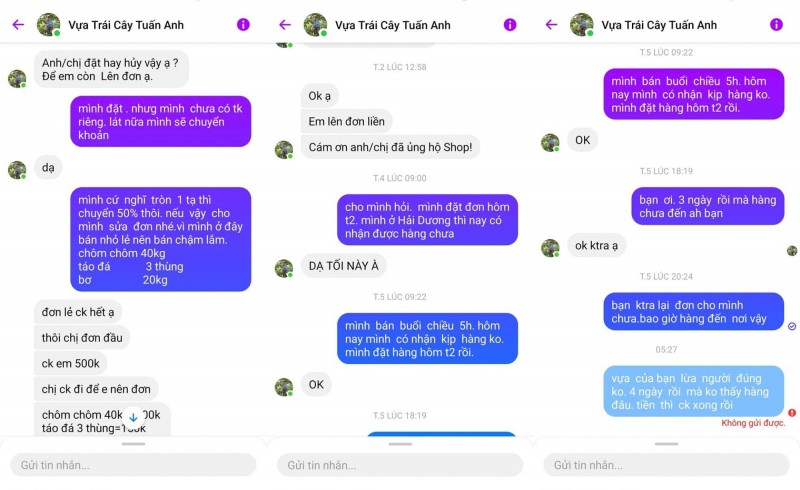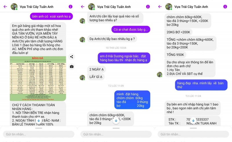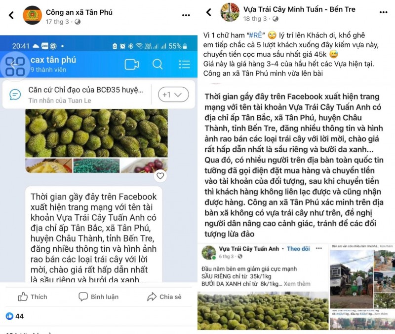 Hiện trên các trang mạng xã hội, điển hình là Facebook, xuất hiện rất nhiều tài khoản và trang cộng đồng lừa đảo bằng hình thức giả danh vựa trái cây bán sỉ lẻ với mức giá “tận vườn”, đánh vào tâm lý ham rẻ của người tiêu dùng.