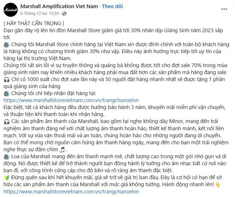 Trên mạng Facebook, người dùng không khó để thấy những bài đăng quảng cáo giảm giá từ 70-80% các sản phẩm điện tử, quần áo,.. của những thương hiệu nổi tiếng như Marshall, Samsung, Adidas,…