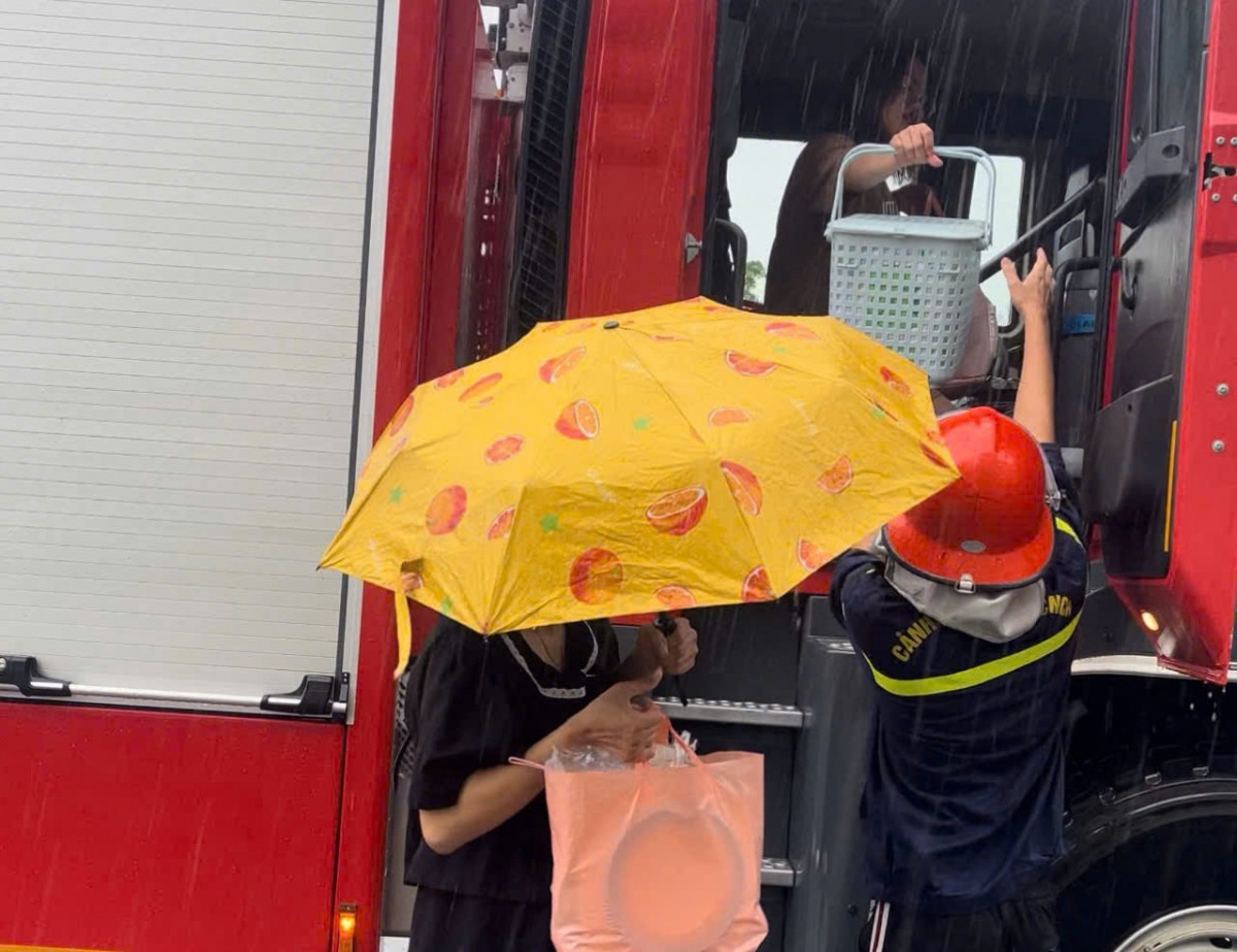 Trong quá trình làm nhiệm vụ, cảnh sát đã tiếp cận một nhà dân đưa cụ già ngoài 80 tuổi nhà bị ngập nước đến nơi an toàn. Tiếp đó, khi nhận được tín hiệu giúp đỡ của người dân về việc bà bầu đau đẻ cần đi bệnh viện gấp, cảnh sát đã nhanh chóng đưa xe chữa cháy (xe chuyên dụng) có mặt đưa bà bầu đi cấp cứu kịp thời.