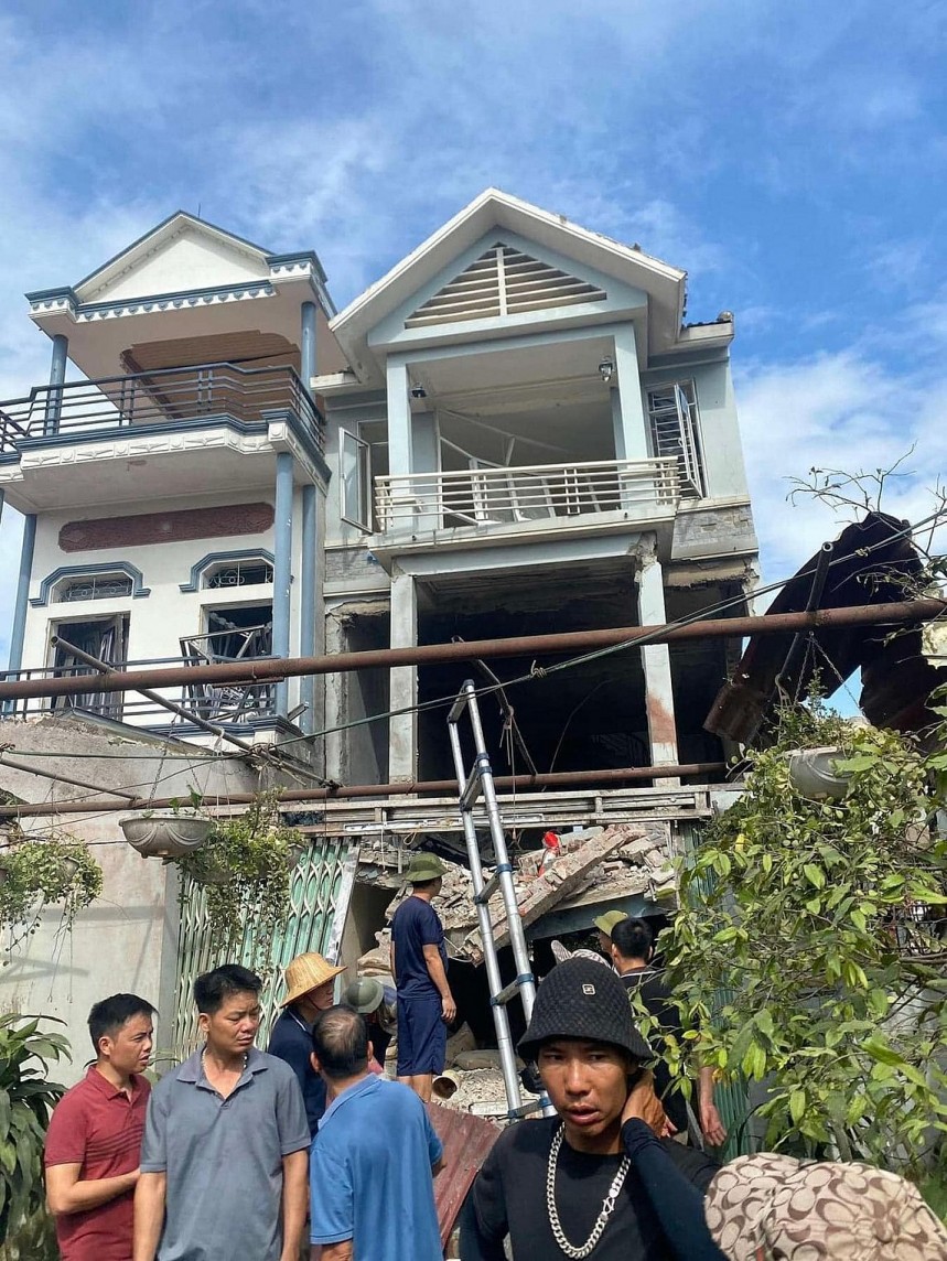 | Một phần của căn nhà 3 tâng đã bị kéo sập sau vụ nổ |