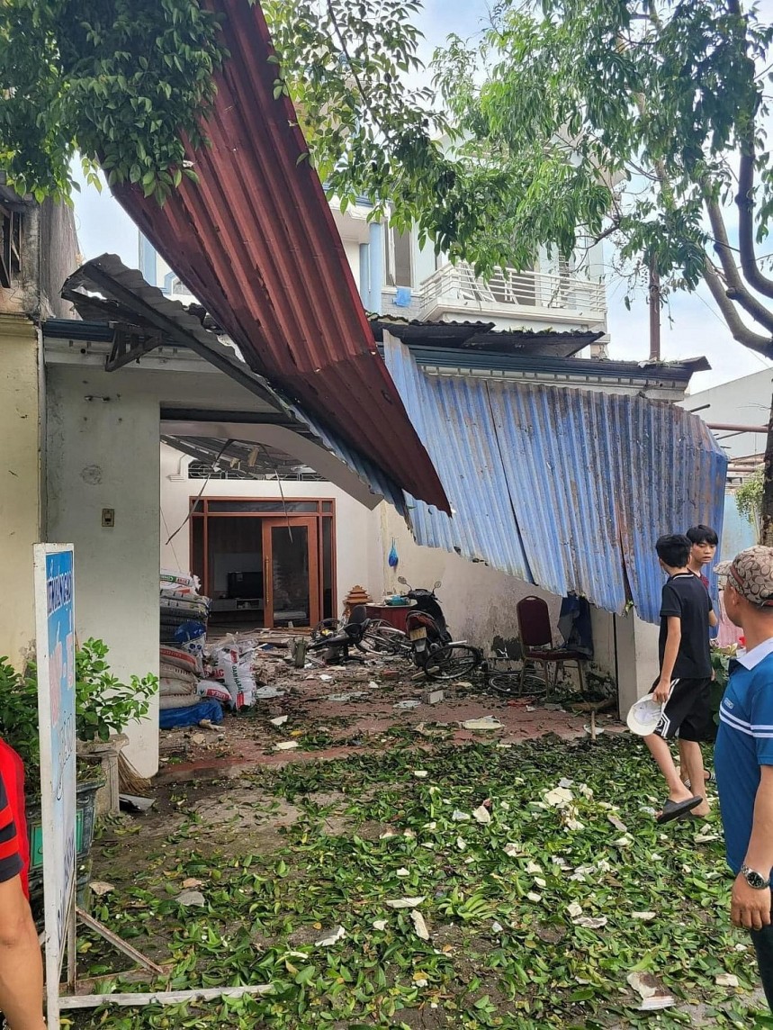 | Rất nhiều cây cối xung quanh cũng như mái tôn căn nhà đã bị hư hại sau vụ nổ |