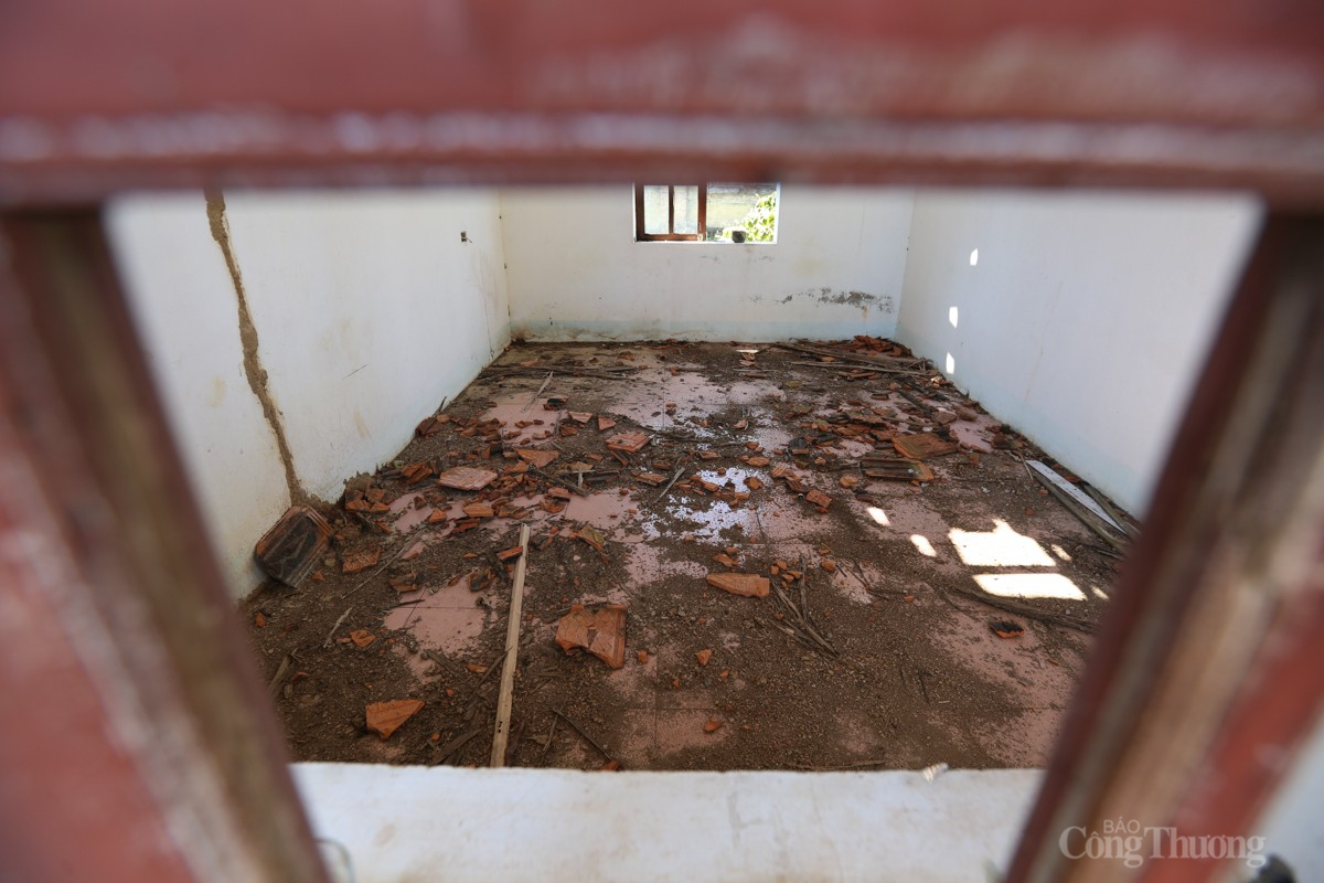 | Bên trong các căn phòng trống trơn, mảnh kính vỡ nằm la liệt khắp nền nhà |