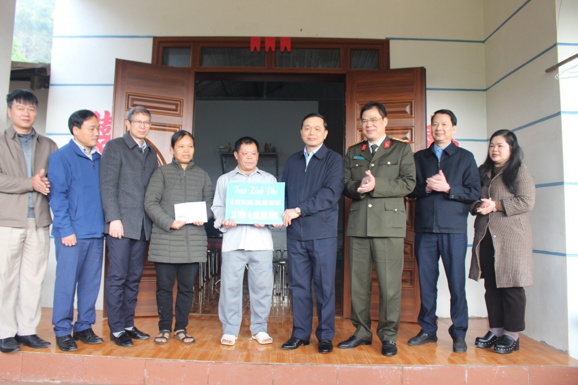 | Lãnh đạo tỉnh Cao Bằng trao kinh phí hỗ trợ xây dựng nhà cho hộ nghèo (Ảnh: Caobang.gov.vn) |