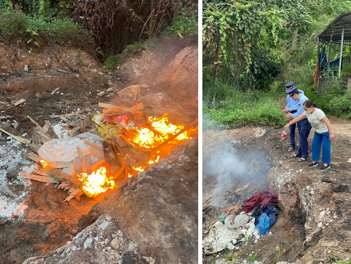 | Quản lý thị trường tỉnh Cao Bằng tiến hành tiêu hủy số nguyên liệu không rõ nguồn gốc, không đảm bảo chất lượng và xử lý hành chính các cá nhân vi phạm |