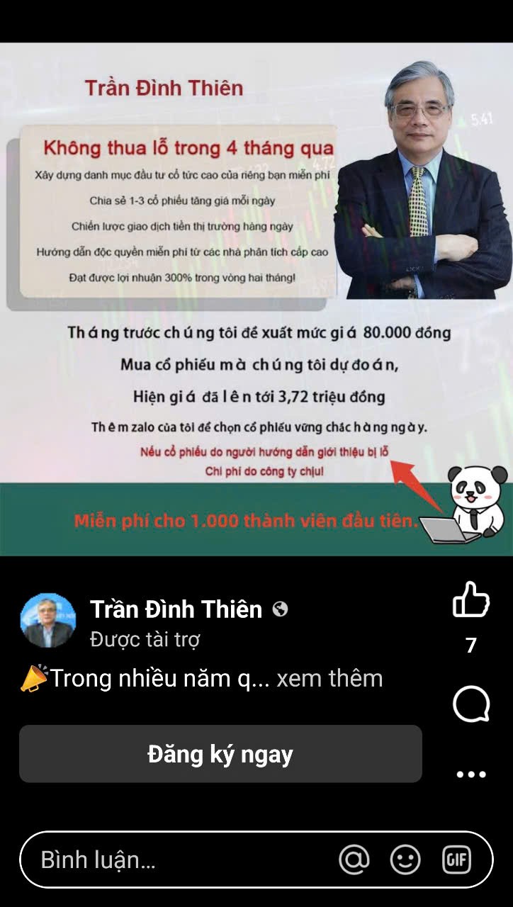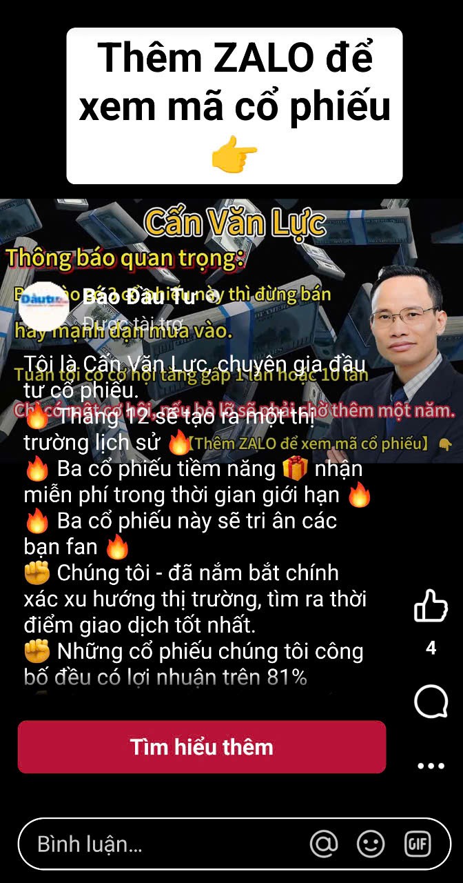 Mấy tuần nay trên các ứng dụng Facebook, Zalo bỗng nhiên xuất hiện các tài khoản đứng tên các chuyên gia kinh tế có uy tín như TS Trần Đình Thiên, TS Cấn Văn Lực, chuyên gia đầu tư Nguyễn Trí Hiếu. Những tài khoản này kêu gọi giới đầu tư tham gia hội nhóm đứng tên các chuyên gia này để có thể “chốt lời” trên những cổ phiếu mà các tài khoản này thông báo lợi nhuận ở mức khủng.