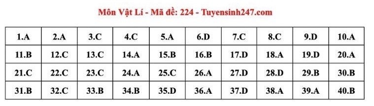 Báo Công Thương cập nhật đáp án đề thi môn Vật lý mã đề 224 tốt nghiệp THPT 2024.