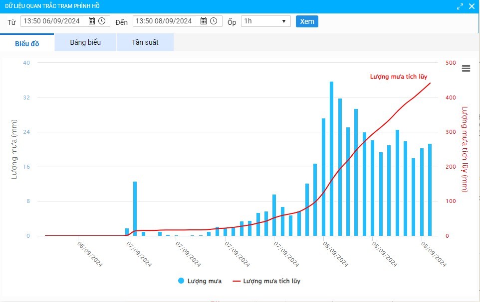 Biểu đồ lượng mưa quan trắc tại trạm Phìn Hồ, huyện Trạm Tấu (Nguồn:TTKTTVQG) |