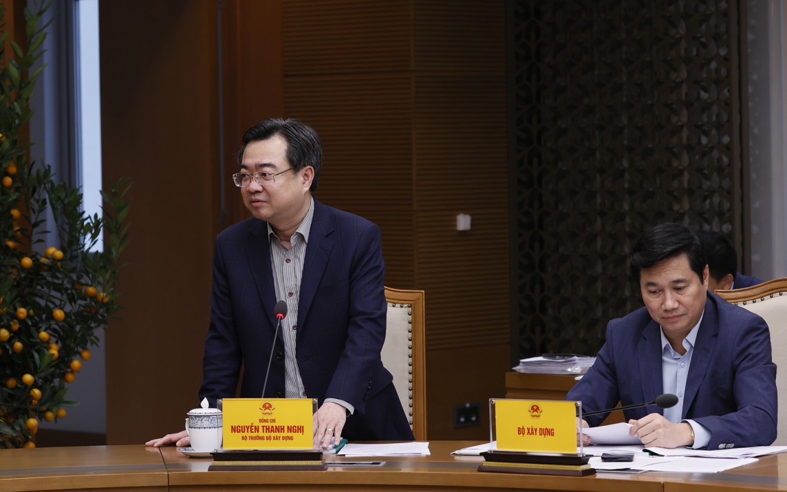 | Lãnh đạo Bộ Xây dựng phát biểu tại cuộc họp. Ảnh: VGP/MK |