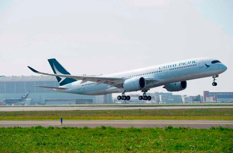 Cathay Pacific đã đặt mua tổng cộng 48 máy bay A350 XWB gồm 22 chiếc A350-900 và 26 chiếc A350-1000. Máy bay A350-900 của Cathay Pacific có thiết kế 3 hạng ghế với tổng số 280 ghế, gồm 38 ghế hạng thương gia có thể ngả thành giường phẳng, 28 ghế hạng phổ thông đặc biệt và 214 ghế hạng phổ thông. Sau thời gian đầu phục vụ các đường bay trong khu vực, máy bay mới của Cathay Pacific dự kiến sẽ được khai thác trên các đường bay tầm xa vào cuối năm nay.