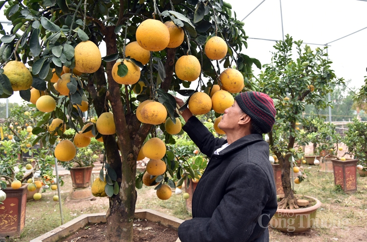 Những ngày cuối năm, rất nhiều người thích chơi cây cảnh lại tìm đến vườn cây của ông Lê Đức Giáp để chọn và mua loại cây cảnh siêu lạ với 10 loại quả trên cùng một cây. Anh Trần Mạnh Chiến, nhà ở quận Hà Đông cho biết, mấy năm gần đây năm nào tôi cũng đến vườn nhà ông Giáp để chọn cho mình một cây bưởi ghép quả vừa độc vừa lạ về chơi Tết. Cây bưởi mang nhiều loại quả tượng trưng cho sự sung túc, đoàn viên, rước tài lộc về cho gia chủ. Chơi cây bưởi ghép cũng khá bền, thường gia đình tôi chơi hết tháng Giêng rồi lại gửi lại nhà ông Giáp chăm sóc, sang năm lại rước về chơi tiếp.
