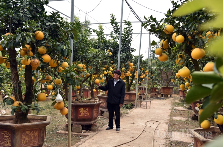 Khách hàng nhà ông Giáp hiện tại không chỉ ở Hà Nội và các tình lân cận mà nhiều người ở miền Trung, miền Nam cũng ra tham quan, đặt mua. Tết Tân Sửu năm nay, ông trồng trên 100 gốc cây với 10 loại quả: Bưởi Diễn, bưởi đỏ, bưởi da xanh, phật thủ, quýt, cam đường, cam Vinh, quất, chanh, chanh đào được ông ghép chung vào một thân cây… với đủ các màu sắc rất hấp dẫn. Để tạo ta cây bưởi siêu lạ với 10 loại quả trên cùng một cây, ông Giáp phải tốn thời gian, công sức, cũng như tâm huyết dành cho nó. THời gian chăm sóc cho cây gàn 3 năm mới đến tay người tiêu dùng (khoảng 2 năm chăm gốc, 1 năm ghép quả), nhưng giá bán cây thời điểm hiện tại cũng chỉ dao động từ 2 đến 10 triệu đồng. Theo ông Giáp, năm nay dịch Covid, kinh tế khó khăn nên cây bán ra với giá phải chăng để nhiều người được chơi. Hiện vườn cây siêu lạ với 10 loại quả trên cùng một cây của ông đã có khách đặt hơn 60 cây, số còn lại ông tin tưởng đến ngày Rằm tháng 12 khách sẽ đến “rước" hết.