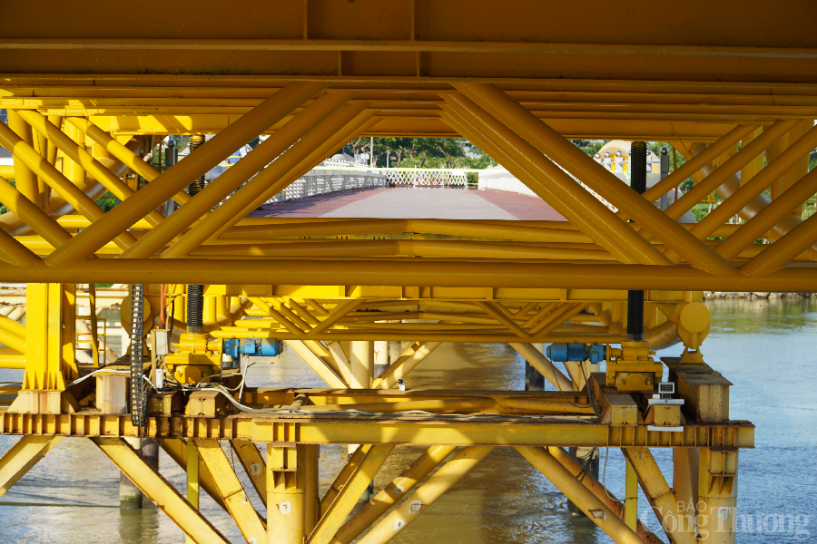 | Một số chi tiết máy móc, gầm cầu Nguyễn Văn Trỗi phục vụ cho công tác nâng, hạ nhịp cầu. |