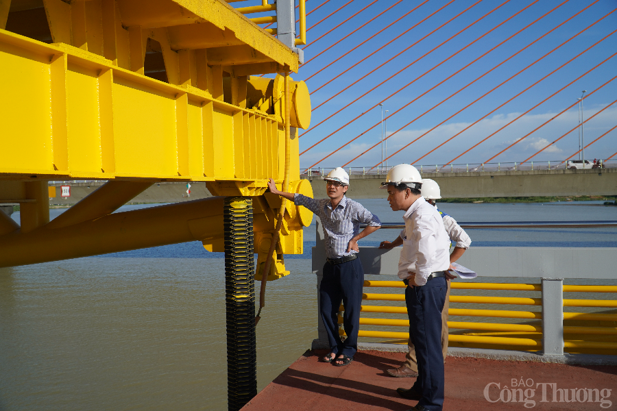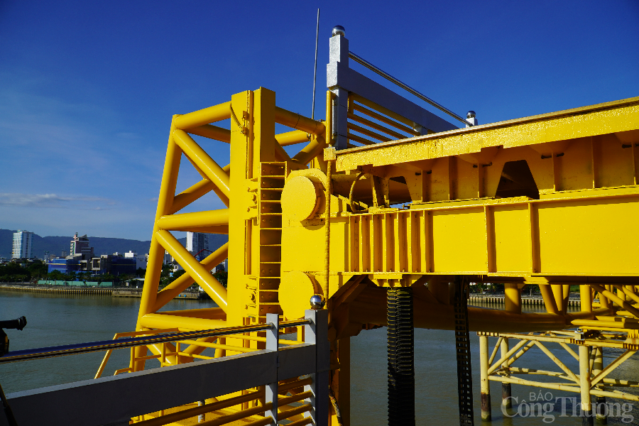 | Trao đổi với PV Báo Công Thương, ông Nguyễn Trung Nghĩa - Phó Giám đốc Sở Giao thông vận tải TP. Đà Nẵng (bìa phải, ngoài cùng) cho biết, chiều cao nâng tối đa của cầu Nguyễn Văn Trỗi là 3,3m, thời gian thực hiện quá trình nâng tốn 30 phút. Tất cả quá trình nâng, hạ đều diễn ra tự động, được cơ giới hóa. |