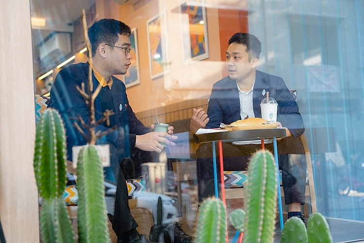| Bùi Minh Tiến và Nguyễn Mạnh Cường trao đổi kế hoạch kinh doanh |
