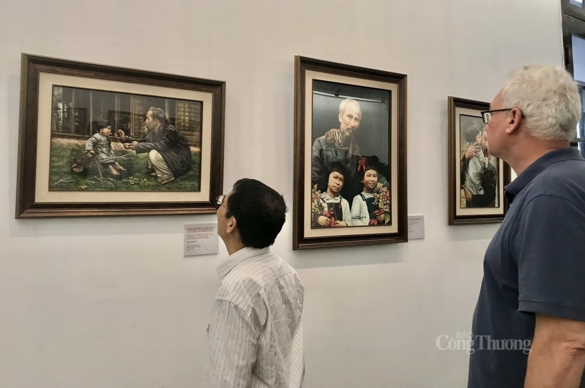 | Triển lãm “Tấm lòng của họa sĩ Việt kiều với Bác Hồ” gây ấn tượng sâu sắc với công chúng. Ảnh: HQ |