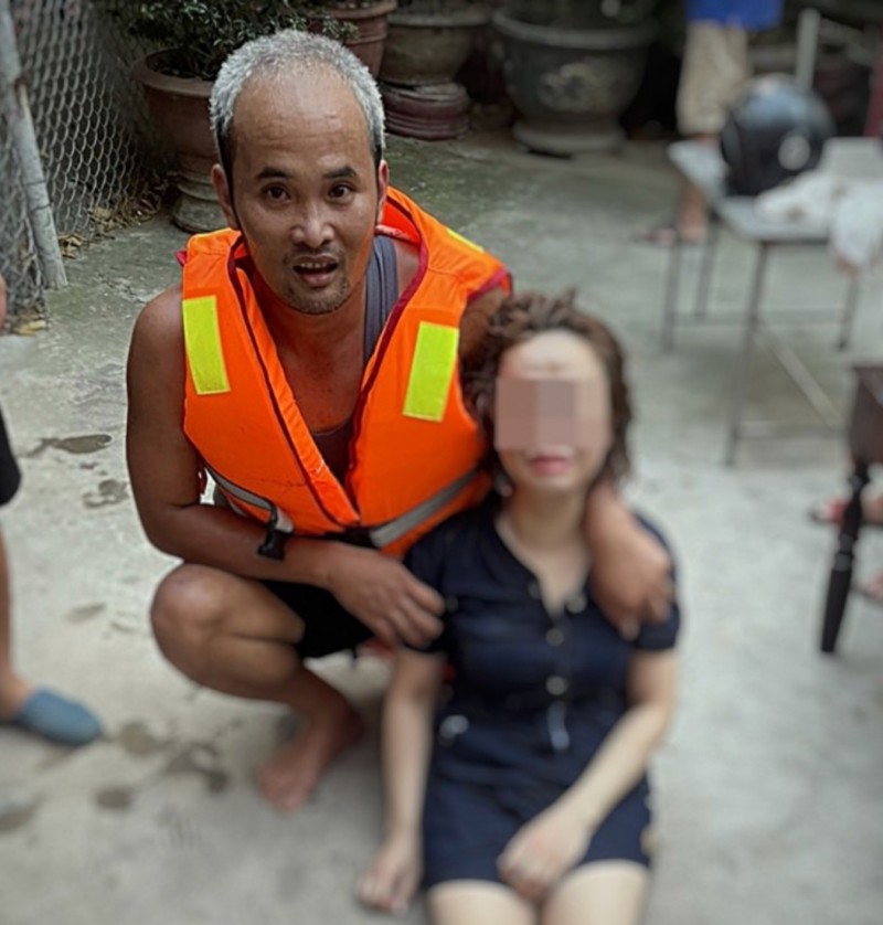 | Đại úy Nguyễn Phước Đạt đưa người phụ nữ vào bờ an toàn |