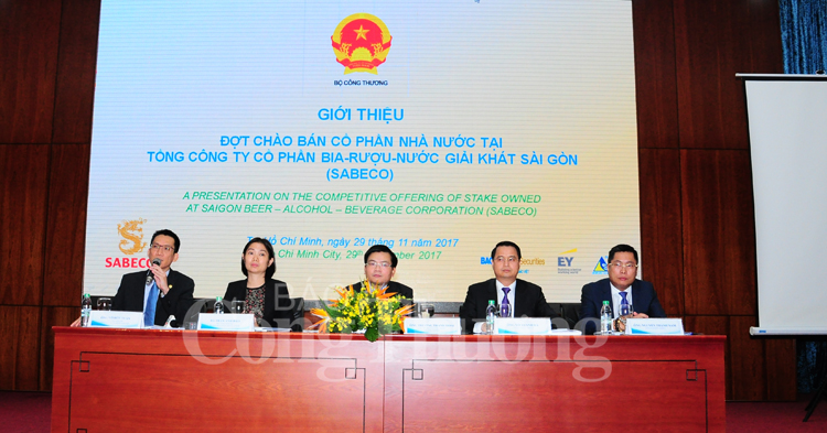| Chủ trì buổi giới thiệu đợt chào bán cổ phần nhà nước tại Sabeco là đại diện Bộ Công Thương, Ban lãnh đạo Sabeco và các bên tư vấn liên quan |