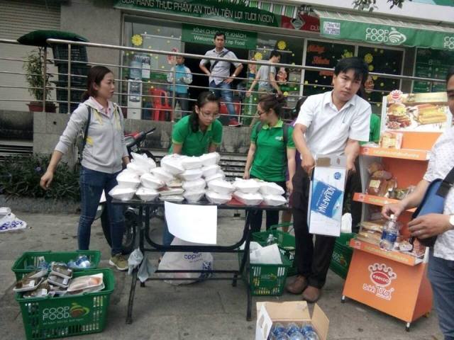 | Nhân viên siêu thị Saigon Coop khẩn trương cứu trợ những người gặp nạn tại chung cư ở quận 8 vào sáng sớm nay |