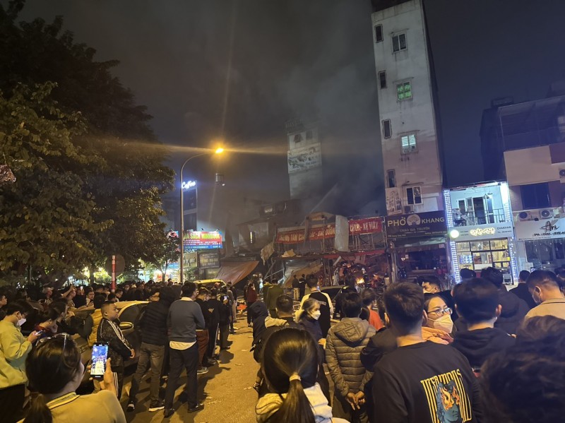 | Đông người dân tụ tập tại hiện trường vụ cháy |
