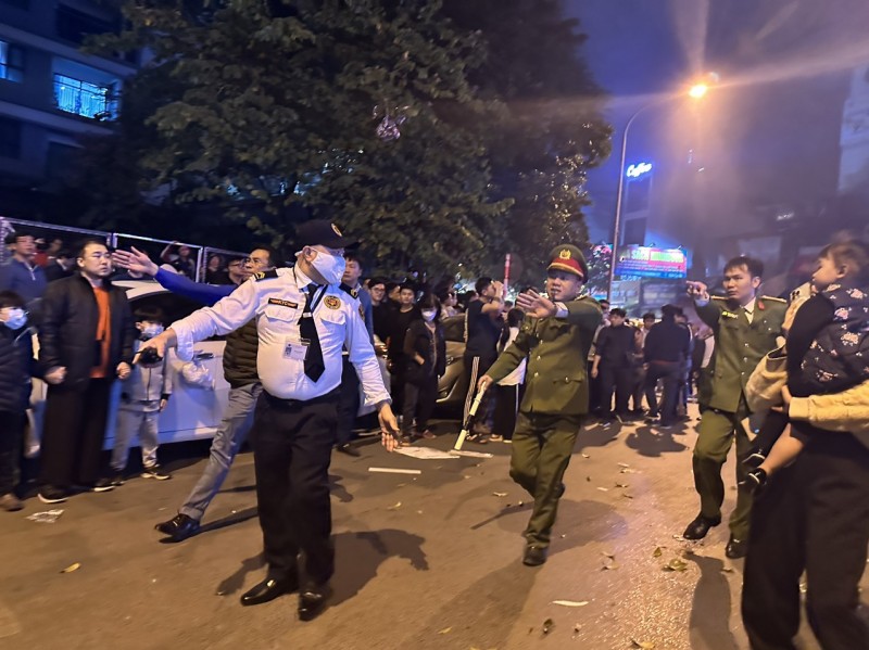 | Công an và bảo vệ tại khu vực đến hỗ trợ công tác chữa cháy |