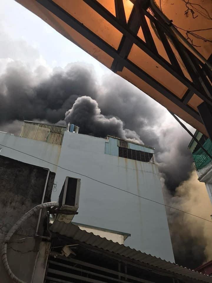 | Khói đen bao phủ cả khu vực. Ảnh: Đào Hoàng |