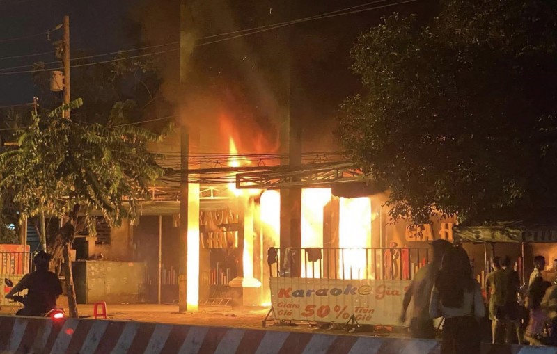 Khoảng 0h30 ngày 14/12, một số người dân nghe tiếng hô hoán, kèm ngọn lửa đang bùng cháy tại quán karaoke Gia Hân (đường ĐT743C, phường Bình Hoà, TP. Thuận An, tỉnh Bình Dương).