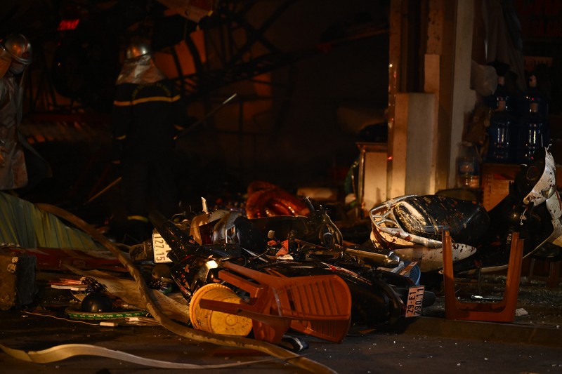 Tại hiện trường vụ cháy cửa hàng sửa xe máy trên phố Hoàng Công Chất, quận Bắc Từ Liêm, Hà Nội, lực lượng chức năng đã phát hiện có xác pháo nổ.