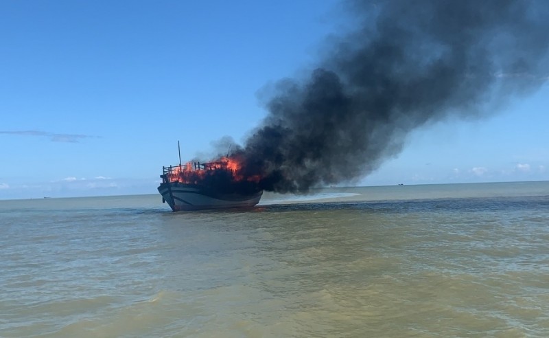 Chiếc tàu cá TTH-95294TS sau đó bị lửa bao trùm và chìm xuống biển.