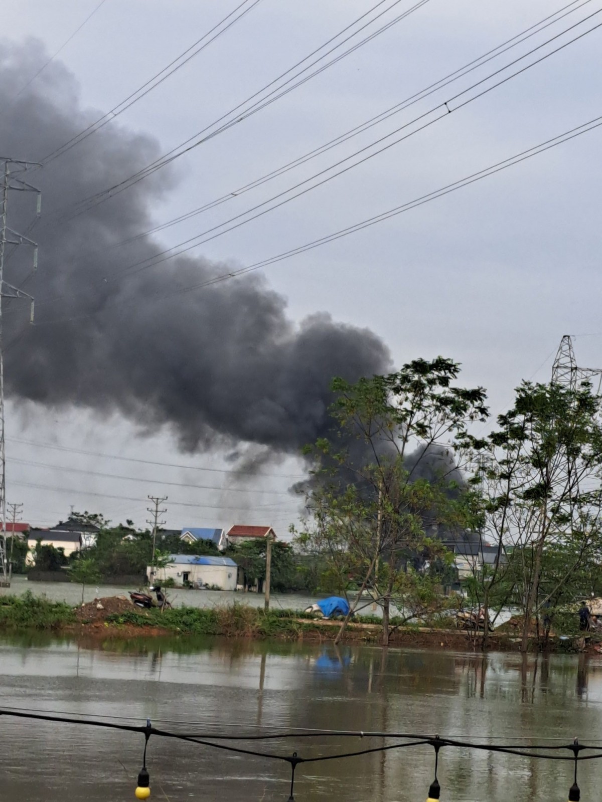 Chiều 23/9, một vụ cháy lớn xảy ra tại xã Thủy Xuân Tiên, huyện Chương Mỹ, thành phố Hà Nội, tạo ra cột khói cao hàng chục mét.