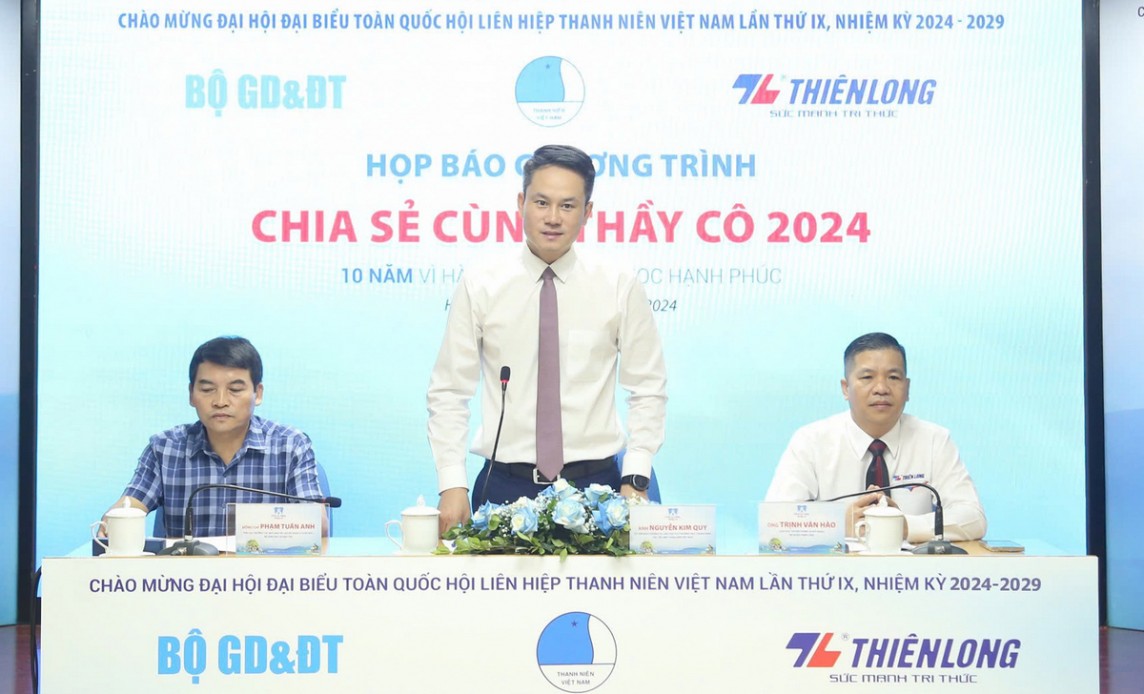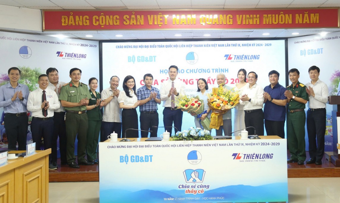 Ngày 20/8, tại Hà Nội, Trung ương Hội Liên hiệp Thanh niên (LHTN) Việt Nam phối hợp với Bộ Giáo dục và Đào tạo, Tập đoàn Thiên Long cùng các đơn vị đã tổ chức họp báo công bố chương trình "Chia sẻ cùng thầy cô" năm 2024.