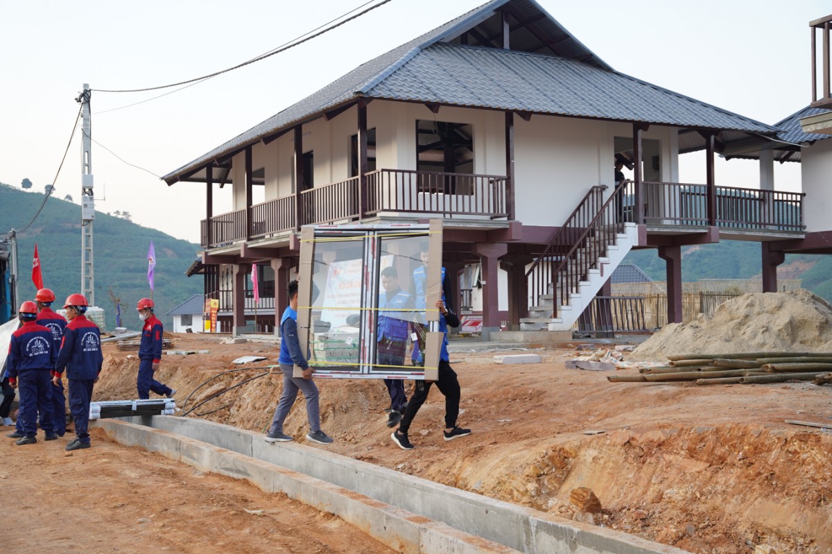| Hiệp hội Cửa Việt Nam vận chuyển và lắp dựng cửa nhôm kính tái thiết Làng Nủ. Ảnh: Phúc Bảo |