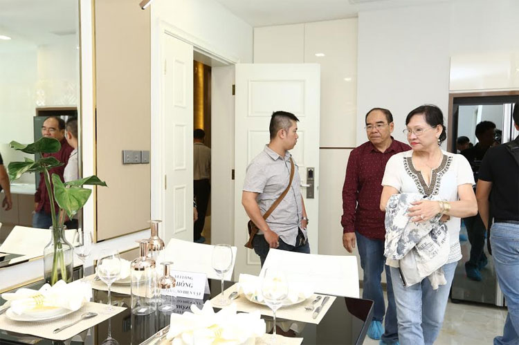 | Ngay trong ngày đầu khai trương, hàng nghìn khách đã đến tham quan nội thất căn hộ mẫu Vinhomes Golden River |