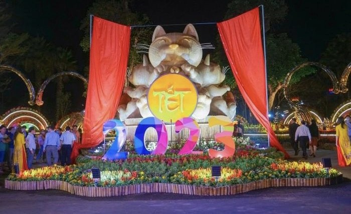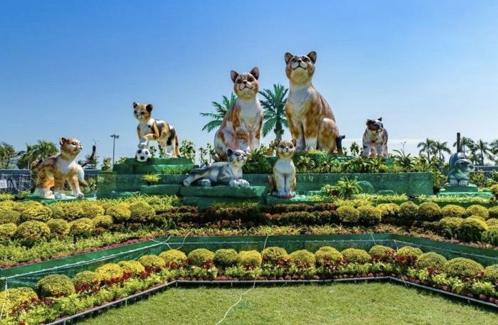 Các linh vật Mèo ngộ nghĩnh đáng yêu được trang trí tại đường hoa tết Quý Mão 2023, thành phố Tuy Hoà, tỉnh Phú Yên |
