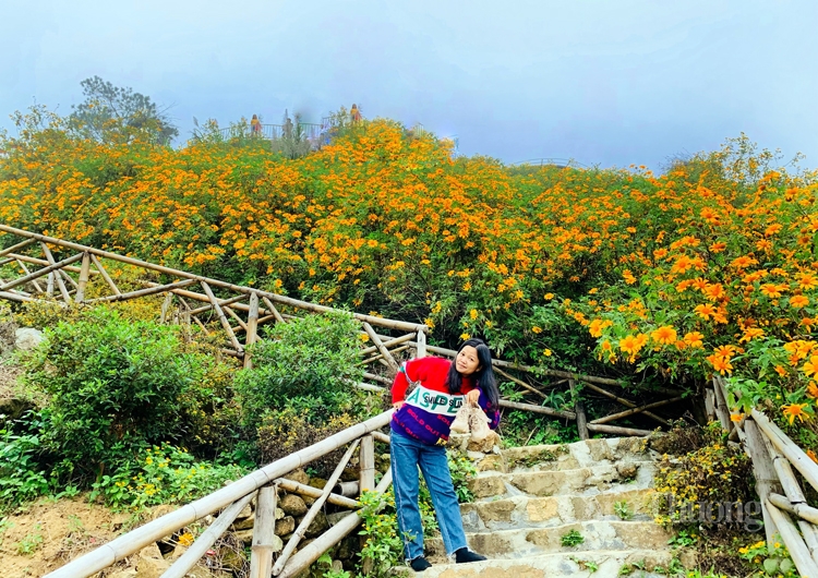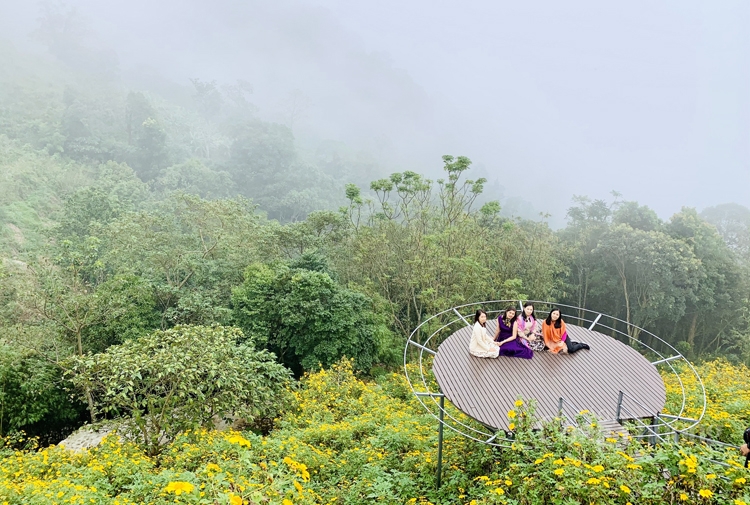 Đặc biệt, khi đến Cầu Mây, du khách sẽ ngạc nhiên bởi sự chào đón của dàn hoa dã quỳ vàng rực rỡ. Đồng thời du khách có thể tha hồ check in mang về những bức ảnh đẹp nên thơ với hoa cùng cảnh sắc thiên nhiên tươi đẹp.