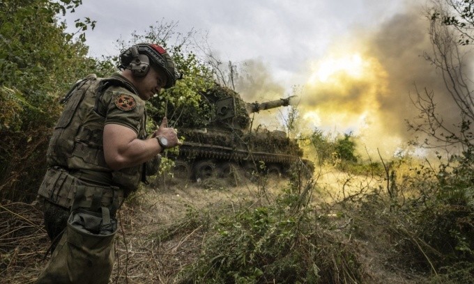| Lính Nga khai hỏa nhằm vào vị trí của quân đội Ukraine ở tỉnh Kursk. Ảnh: AP |