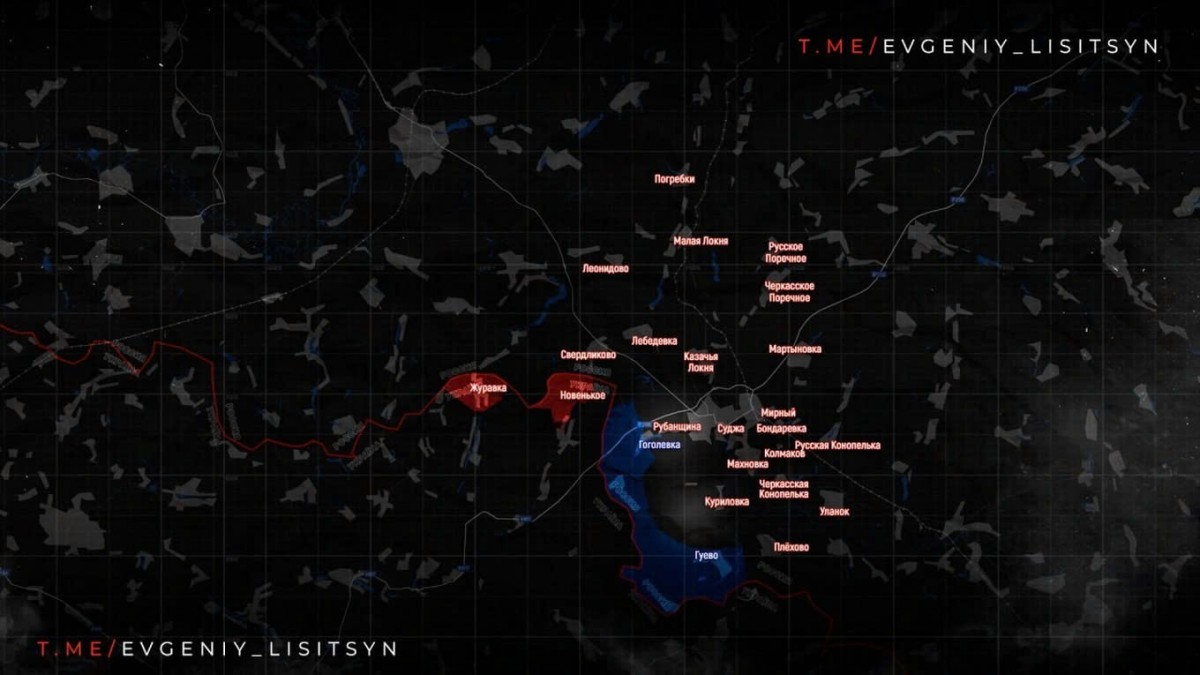 Phóng viên chiến trường Evgeniy Lisitsyn đăng tải trên Telegram, cho biết, tại khu vực Kursk, lực lượng Nga vượt biên giới vùng Sumy và kiểm soát phần phía bắc khu vực Vladimirovka. Ở Zaporizhia, giao tranh tại Shcherbaki và Malye Shcherbaki vẫn diễn ra căng thẳng, với quân đội Nga chậm lại trước sự kháng cự quyết liệt của Ukraine.