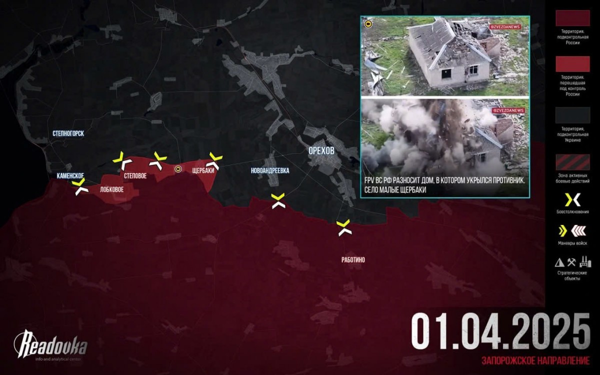 Theo kênh Readovka, quân đội Nga đã bắt đầu phong tỏa lực lượng Ukraine tại Kamenskoye, sau khi phá vỡ tuyến phòng thủ đầu tiên của Nhóm Tavria tại Stepovoye - Malye Shcherbaki - Shcherbaki. Bộ chỉ huy Nga quyết định cô lập khu vực này nhằm suy yếu dần sức kháng cự của Ukraine.