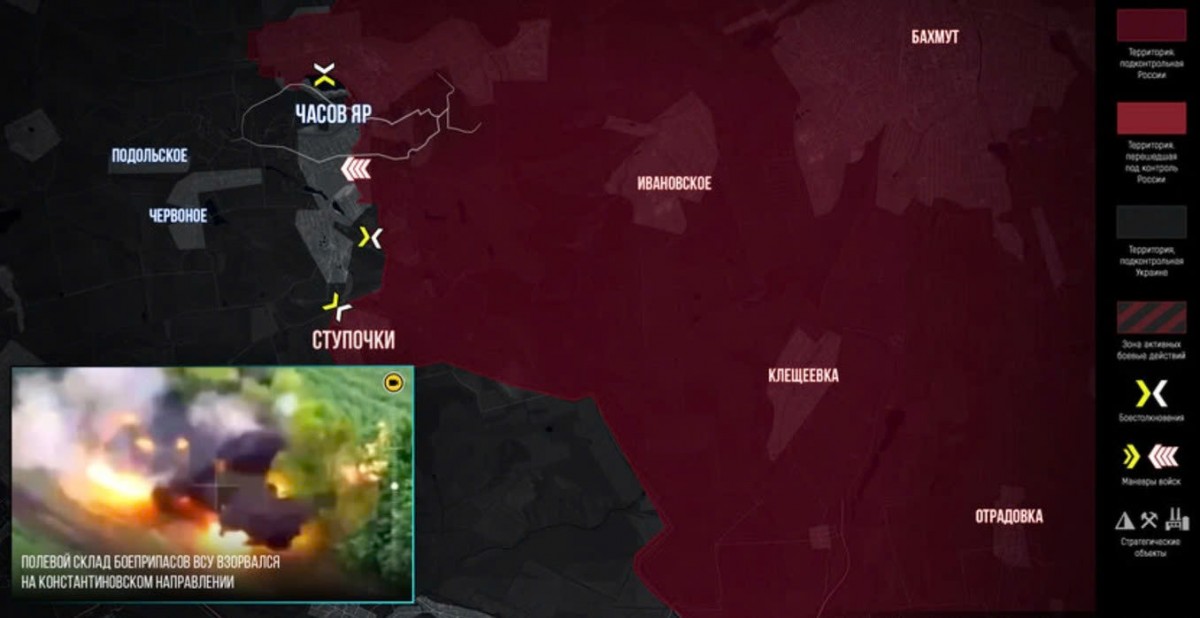 Mục tiêu chiến lược của lực lượng Nga không chỉ là kiểm soát Chasov Yar mà còn là bước tiến tiếp theo theo hướng Konstantinovka và làng Alekseevo-Druzhkovka. Việc thực hiện đột phá này được thúc đẩy bởi sự thay đổi đáng kể trong cán cân lực lượng ở khu vực phía nam Konstantinovka, khi quân đội Ukraine đã điều động các nhóm lớn từ nhiều khu vực khác nhau đến dải khu vực gồm Koptevo, Poltavka, Rusin Yar, Dolgaya Balka và Berestok.