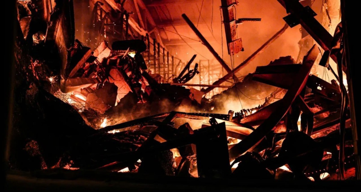 | Một vụ hỏa hoạn bùng phát sau cuộc tấn công bằng máy bay không người lái của Nga ở ngoại ô Kharkiv vào đêm ngày 26/5/2025. Ảnh: The Kyiv Independent |