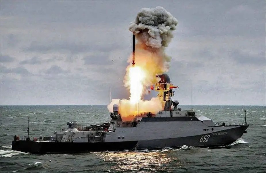 Tên lửa hành trình Kalibr khai hỏa vào căn cứ Ukraine. Nguồn: Bộ Quốc phòng Nga