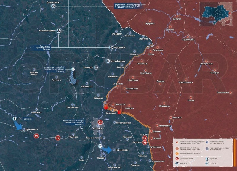 Thay vì phòng thủ như trước, các đơn vị Nga đang chủ động tiến hành một loạt các hoạt động tấn công. Đáng chú ý, các mũi tấn công của Nhóm tác chiến phía Tây đã giành kiểm soát một số vị trí đầu cầu tại vùng giáp ranh giữa Kharkov và Lugansk, trong khu vực Liman Pervy và Sinkovka. Đây là những vị trí quan trọng giúp phía Nga tiếp tục tiến gần lại thành phố chiến lược Kupyansk, cũng như gây sức ép lớn lên toàn bộ khối quân Ukraine bên phải sông Oskol.