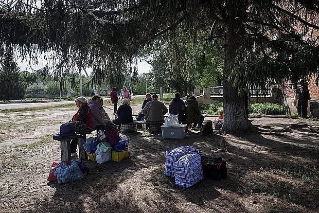 | Người dân Ukraine đang được sơ tán khỏi khu vực chiến sự tại Kharkov. Ảnh: Reuters |
