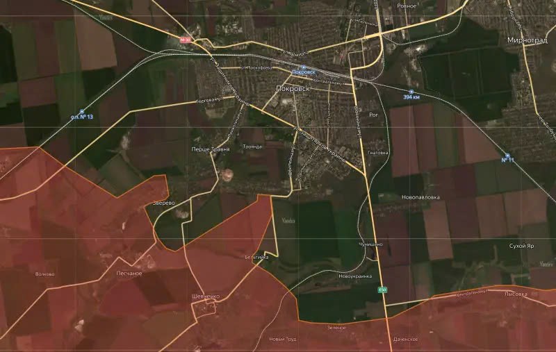 Cùng lúc, lực lượng Nga đã tiến sâu 1km vào khu vực Pervoe Maya và chiếm giữ các vị trí chiến lược tại đây. Các đơn vị Nga cũng đang tiến về các khu vực Mirnograd và Konstantinovka. Các trận chiến ở Novaya Poltavka và vùng ngoại ô Elizavetovka vẫn diễn ra căng thẳng, với quân đội Nga giành những bước tiến quan trọng. Theo phóng viên Bogdan Miroshnikov, các chiến thắng của Nga khiến tình hình ở Pokrovsk ngày càng trở nên khó khăn hơn.
