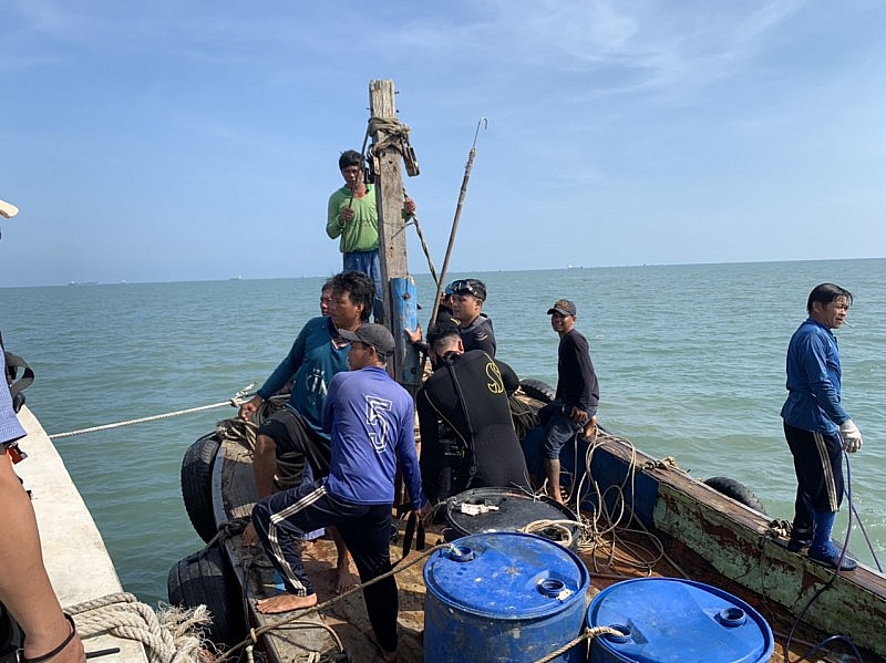 | Khu vực tàu đánh cá bị chìm trên biển Cần Giờ |