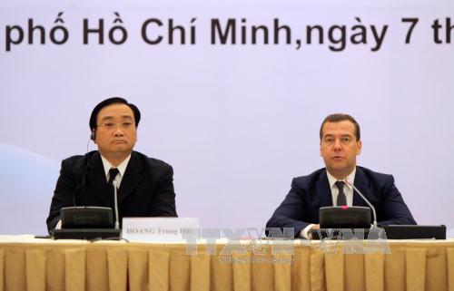 | Thủ tướng Dmitry Medvedev và Phó Thủ tướng Hoàng Trung Hải tại Diễn đàn Doanh nghiệp Việt Nam - Liên bang Nga. Ảnh: Thanh Vũ - TTXVN |