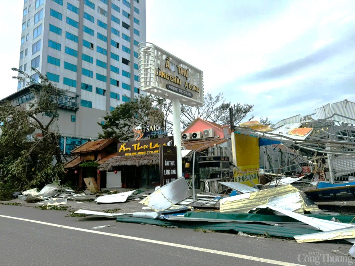 | Khu phố ẩm thực Quảng Ninh đổ nát sau khi bão số 3 tràn qua. |